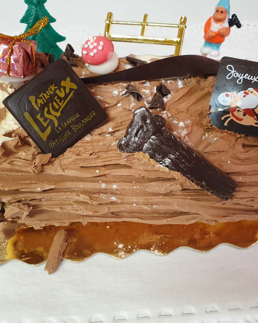 Roulé de génoise fourré de crème au beurre chocolat.
